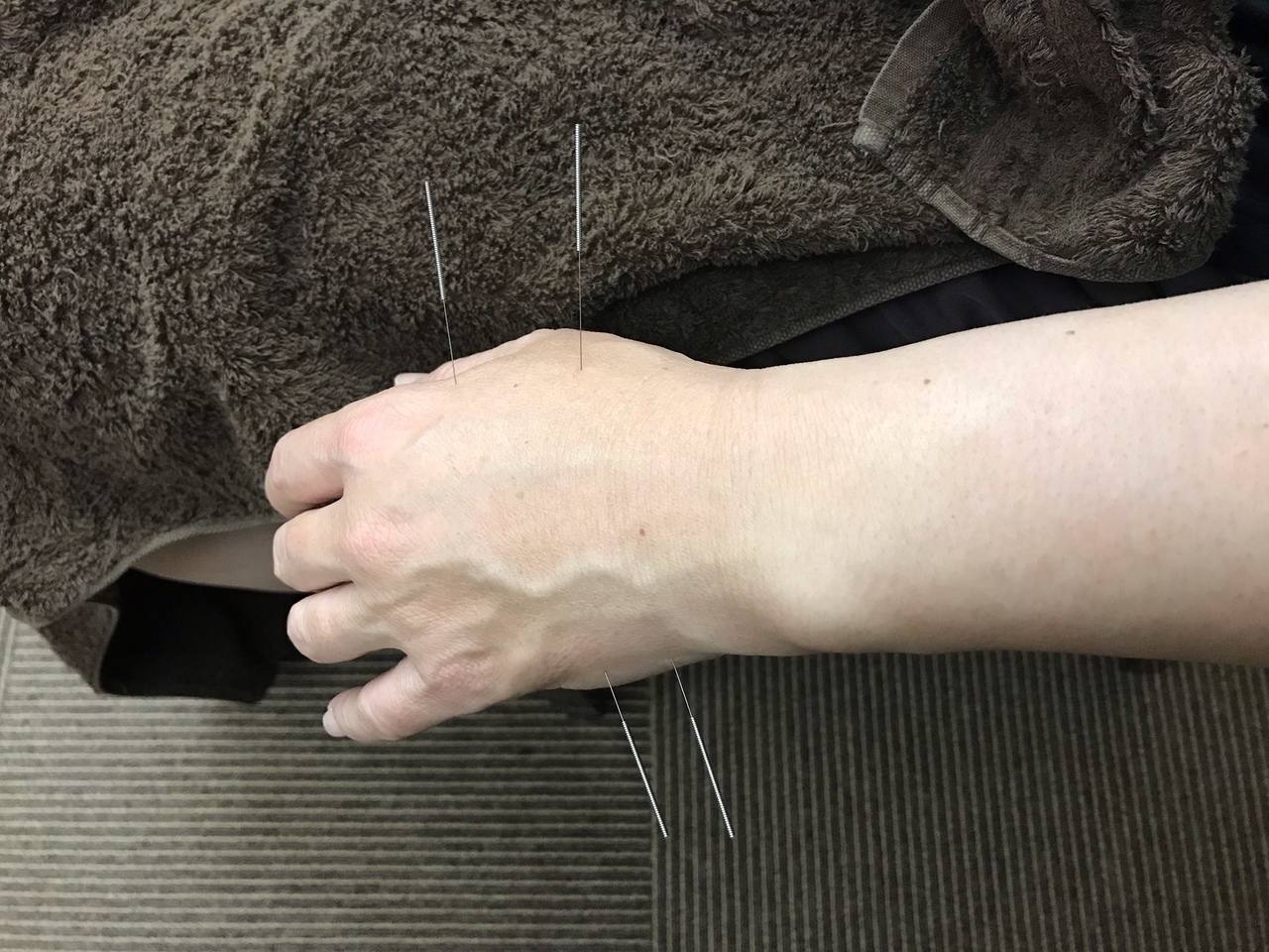 主に患部から離れた場所に鍼を打ち、メインは手足のツボです。